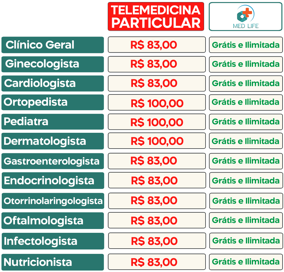 Começando com a telemedicina, veja as especialidades com atendimento ilimitado, 24 horas por dia: